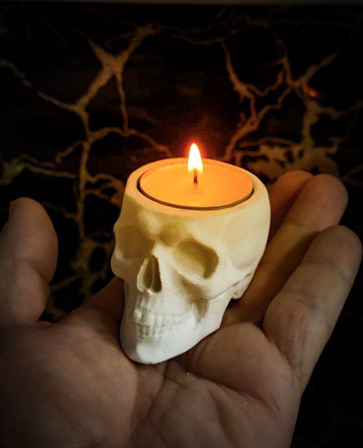 Подсвечник «Череп» из гипса с чайной свечой 37×25 мм
