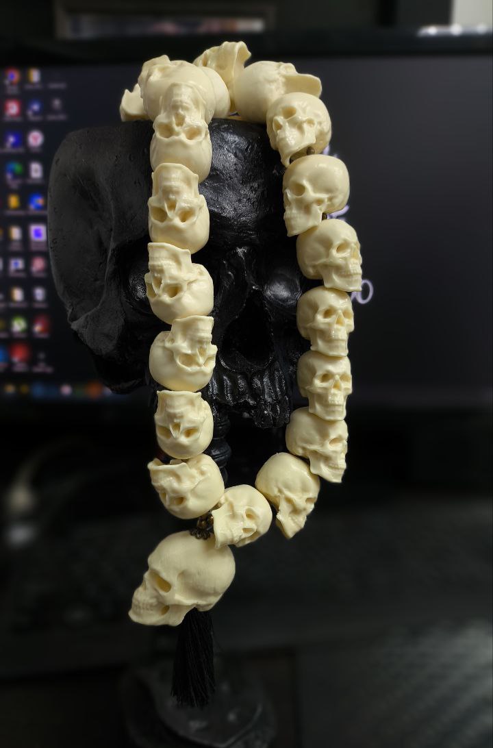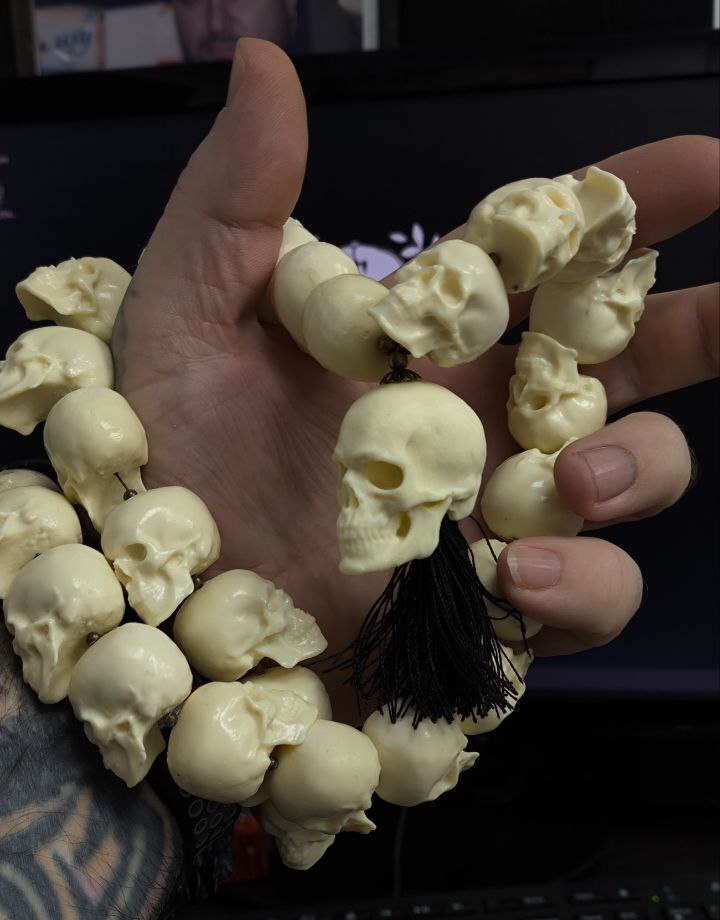 Четки "Черепа" выполнены из полимерной смолы, что обеспечивает их долговечность и устойчивость к износу. Размер каждого черепа составляет 22 мм, что делает их заметными и привлекательными. Основа четок выполнена из металлического тросика в оплетке размером 0.6 мм, что обеспечивает прочность и надежность изделия. Цвет, размер, вес четок могут отличаться от указанных на фото, так как это зависит от партии товара. Четки "Черепа" большие 22 мм каждый череп в количестве 33 шт. станут отличным подарком для мужчин и унисекс, которые ценят оригинальные и стильные аксессуары.