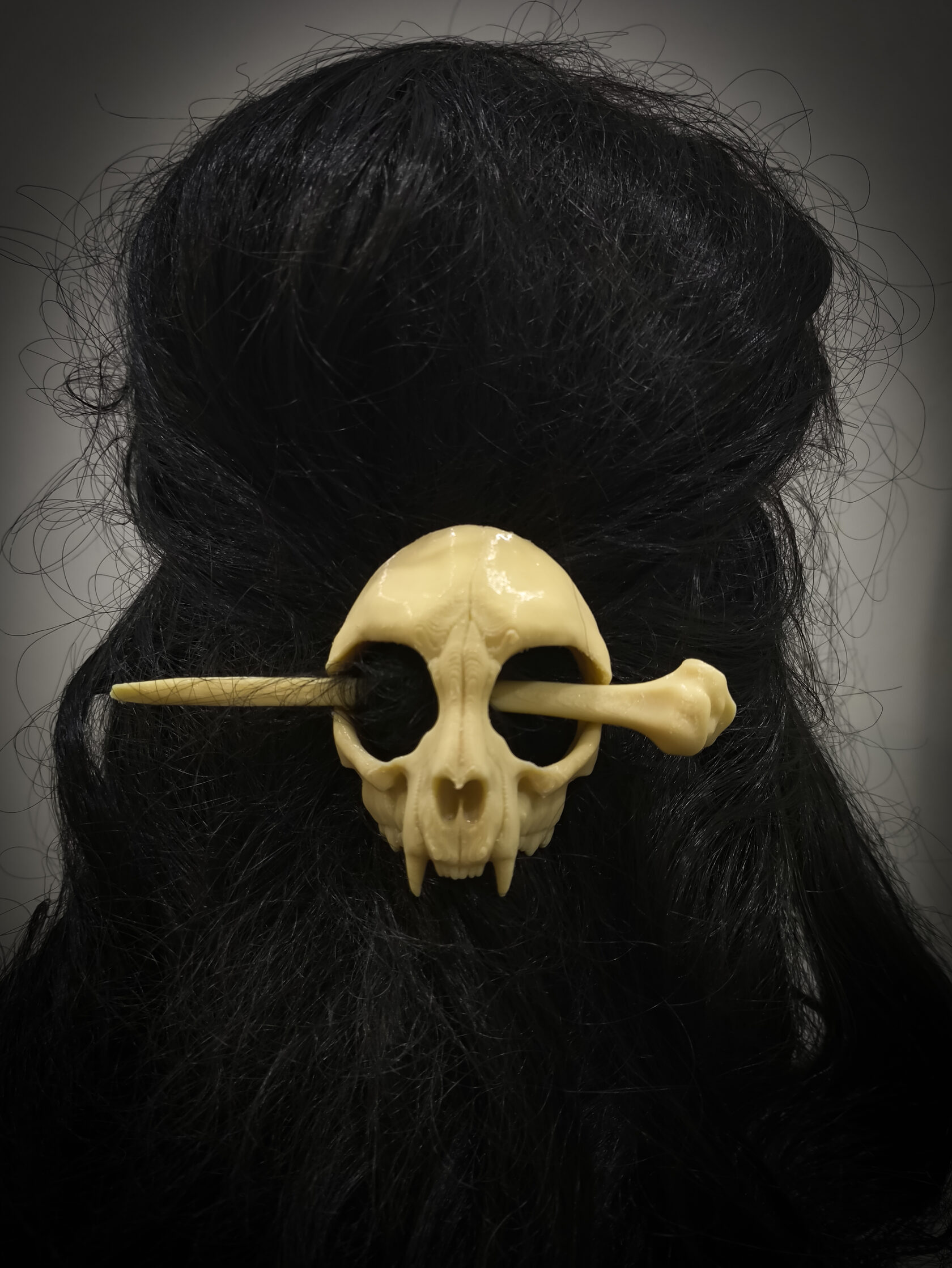 Заколка для волос Череп Кошки: оригинальный аксессуар для стильных и ярких. Заколка позволяет собрать хвост, пучок или закрепить ее на распущенных волосах. Это делает ее многофункциональным аксессуаром, который поможет вам создать разнообразные прически.