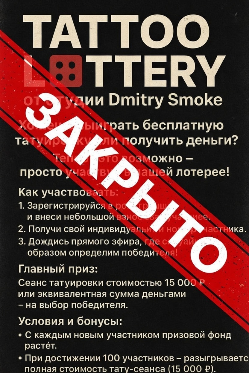 К сожалению, из‑за низкой активности мы вынуждены завершить тату‑лотерею раньше запланированного срока.